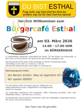 20.2.2026Beim ASV Esthal gibt es eine neue sportliche Attraktion: Ab sofort bereichert eine Dartsabteilung das Vereinsangebot. Interessierte sind herzlich eingeladen, montags abends ab 19 Uhr im Vereinsheim des ASV Esthal […]
