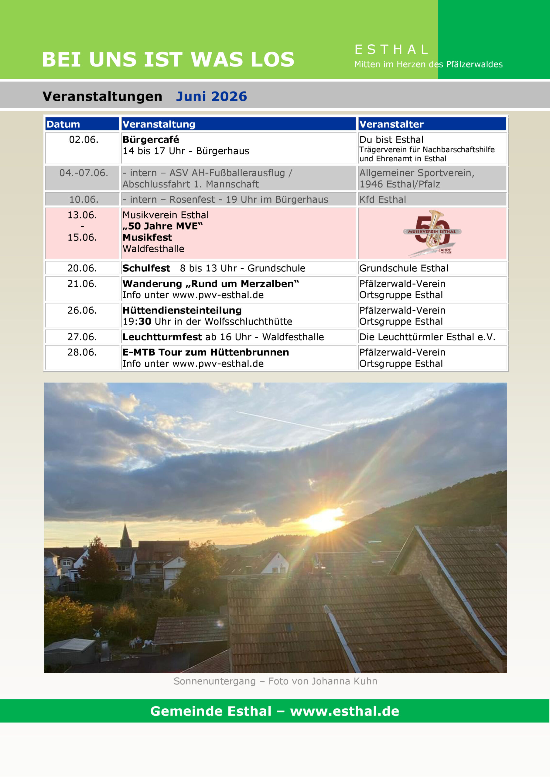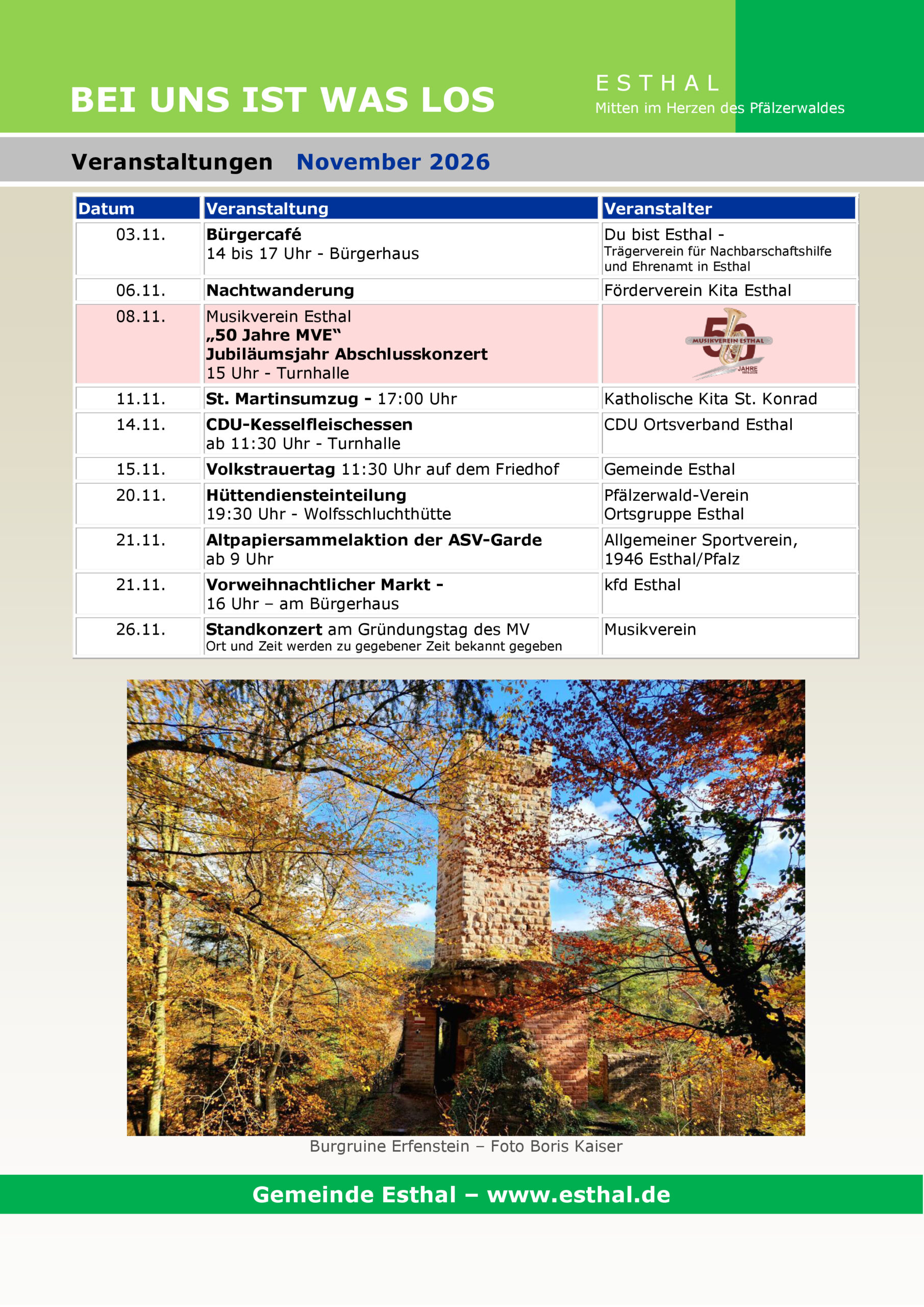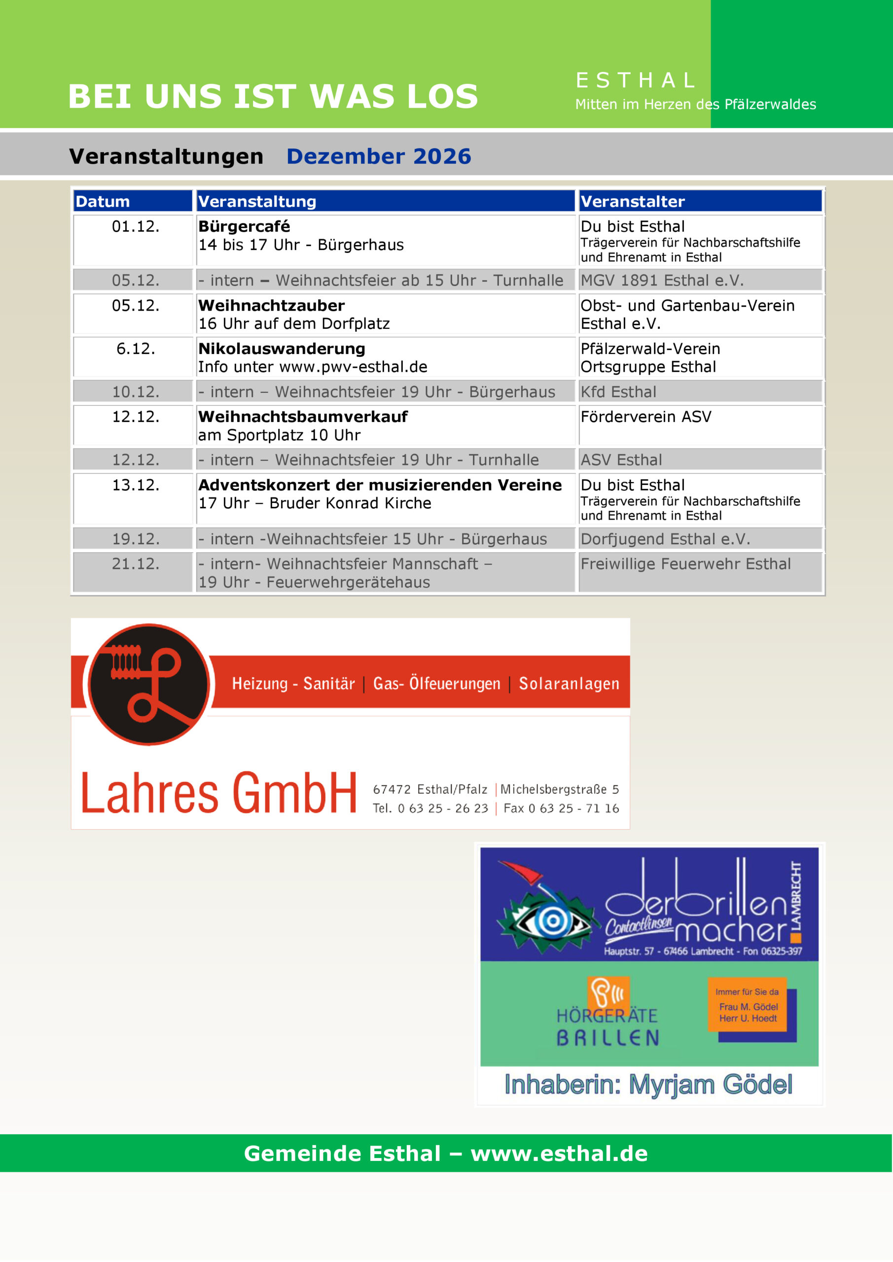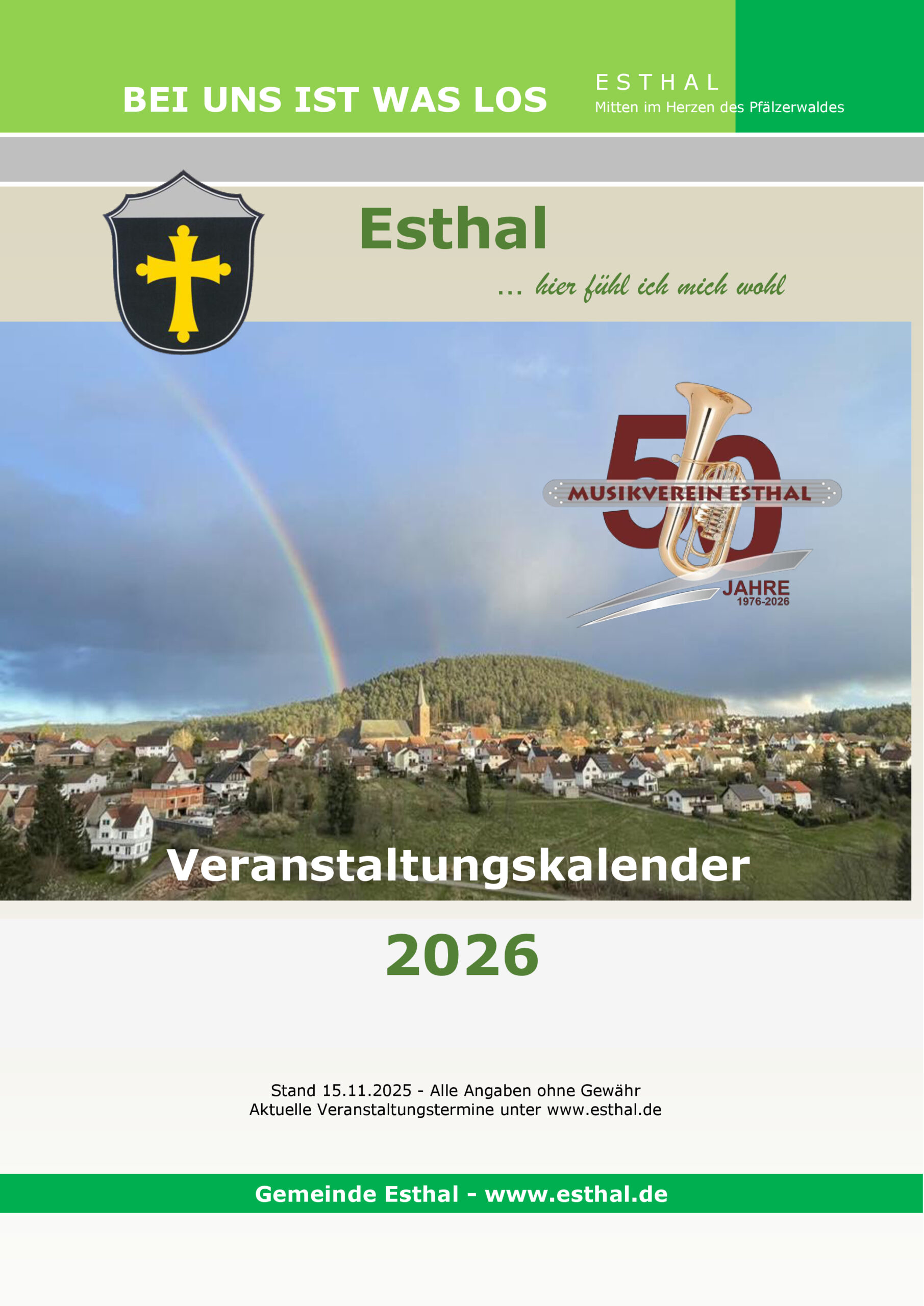 Druckvorlage Kalender 2026 Stand 08.11.2025 – Druckfertig – Änderungen noch möglich bis 10. November. Seite 1 – Titel Seite 2 – Grußwort Seite 3 – Januar Seite 4 – Februar Seite 5 – März Seite 6 – April Seite 7 – Mai Seite 8 – Juni Seite 9 – Juli Seite 10 – August Seite 11 – September Seite 12 – Oktober Seite 13 – November Seite 14 – Dezember Seite 15 – Vereine Seite 16 – Rückseite