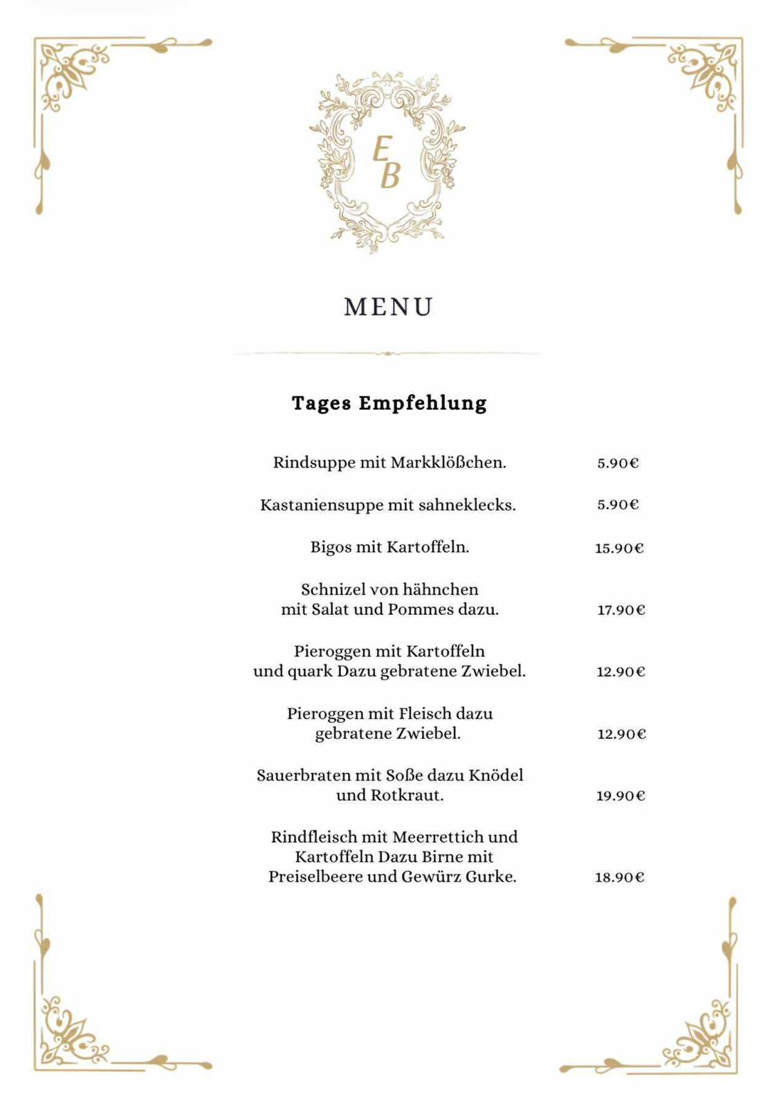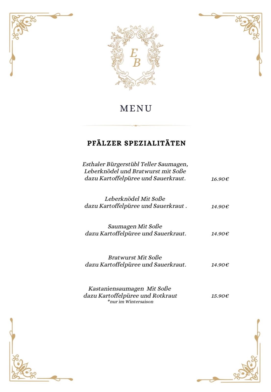 Esthaler Bürgerstübl Feierlichkeiten sind möglich, bitte sprechen sie und an.Monika Koltun und Weronika Skowron Monika KoltunBlumenstr. 267472 EsthalMobil: 0152 5181 5893Homepage:ÖffnungszeitenMi: 15 bis 21.30 UhrDo: 17 bis 21:30 UhrFr: 17 bis 21:30 UhrSa: 15 bis 20:30 UhrSo u. Feiertage: 12 – 20:30 Uhr Speisekarte(Stand 12.2025) Startseite